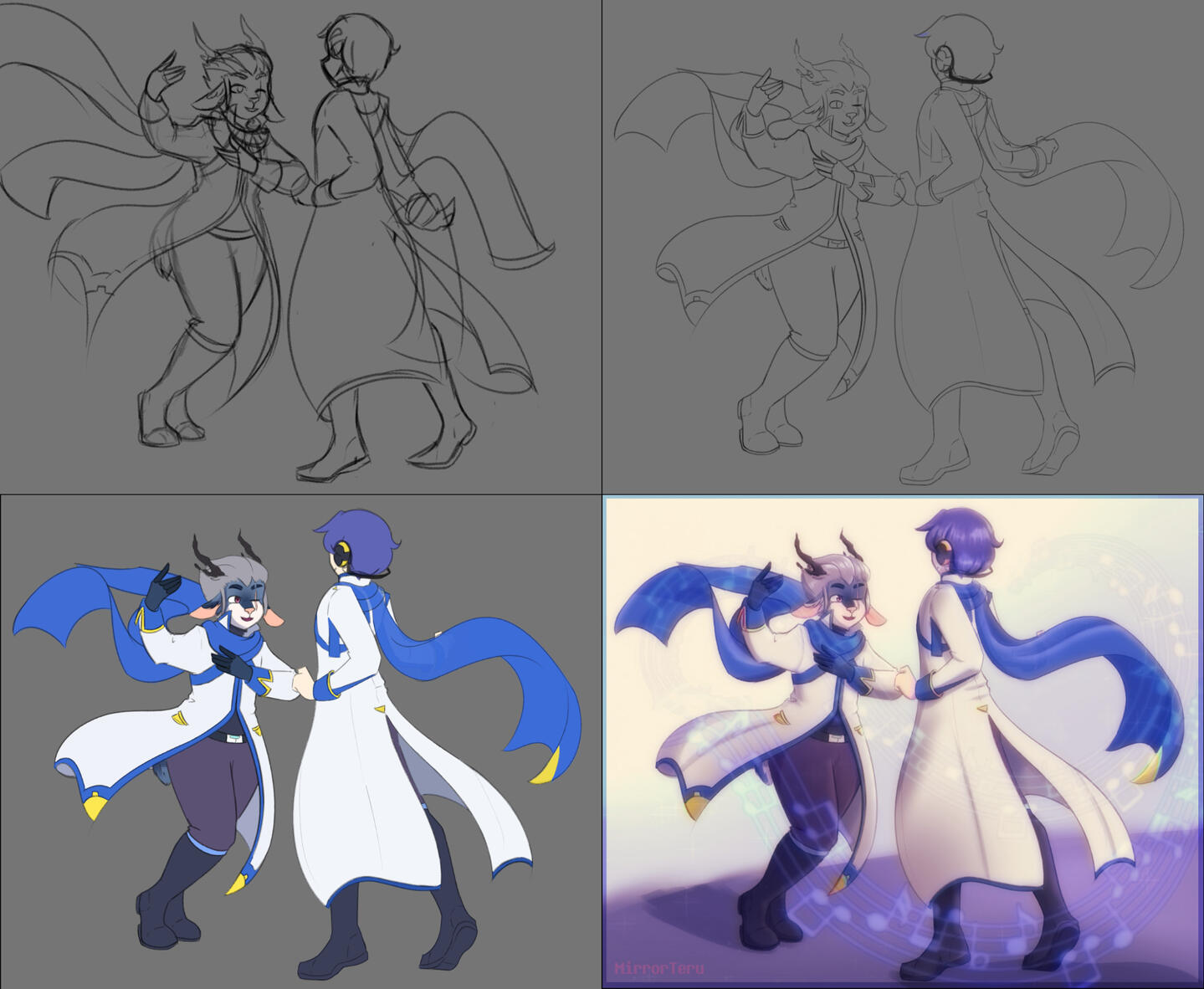 I draw, mess around with Vocal Synths for covers, dream of making an original song one day.I also work on personal projects relating to OC's and the collaborative story with friends.